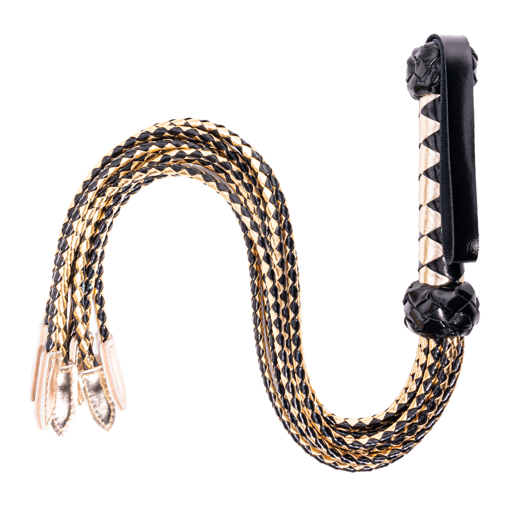 Black and Gold Flog Style Beautiful BDSM Heart Passion PU Leather BDSM Whip